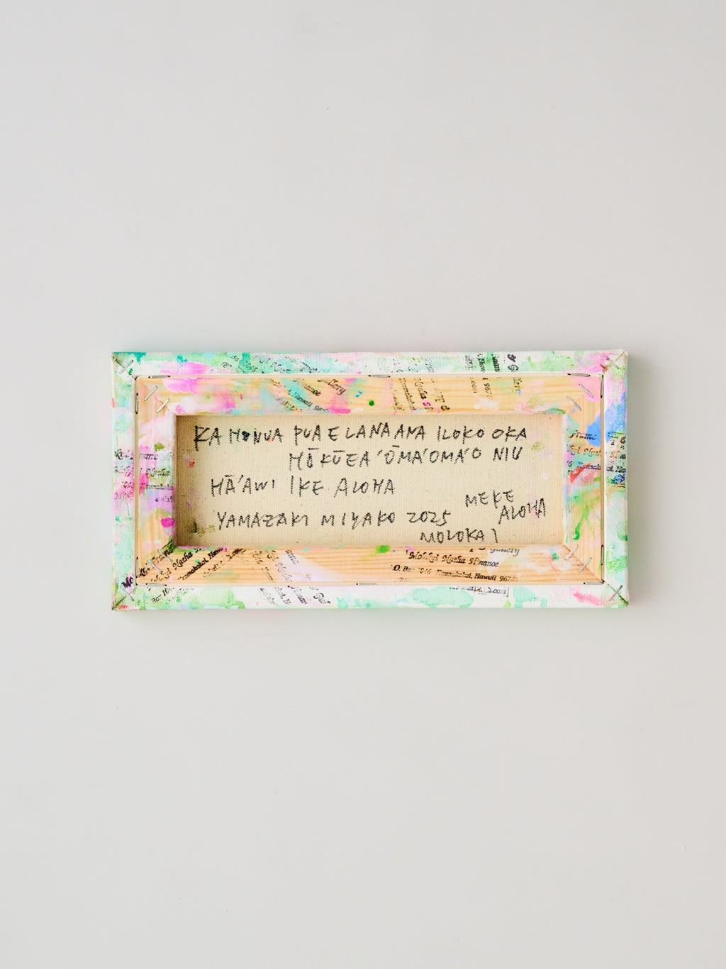 ⚫︎Ka honua pua e lana ana i loko o ka hokuea 'oma'oma'o niu. / Ha'awi i ke aloha(もみの木色の銀河に浮かぶ花のかたちの惑星たち/愛を贈る)15×30cm