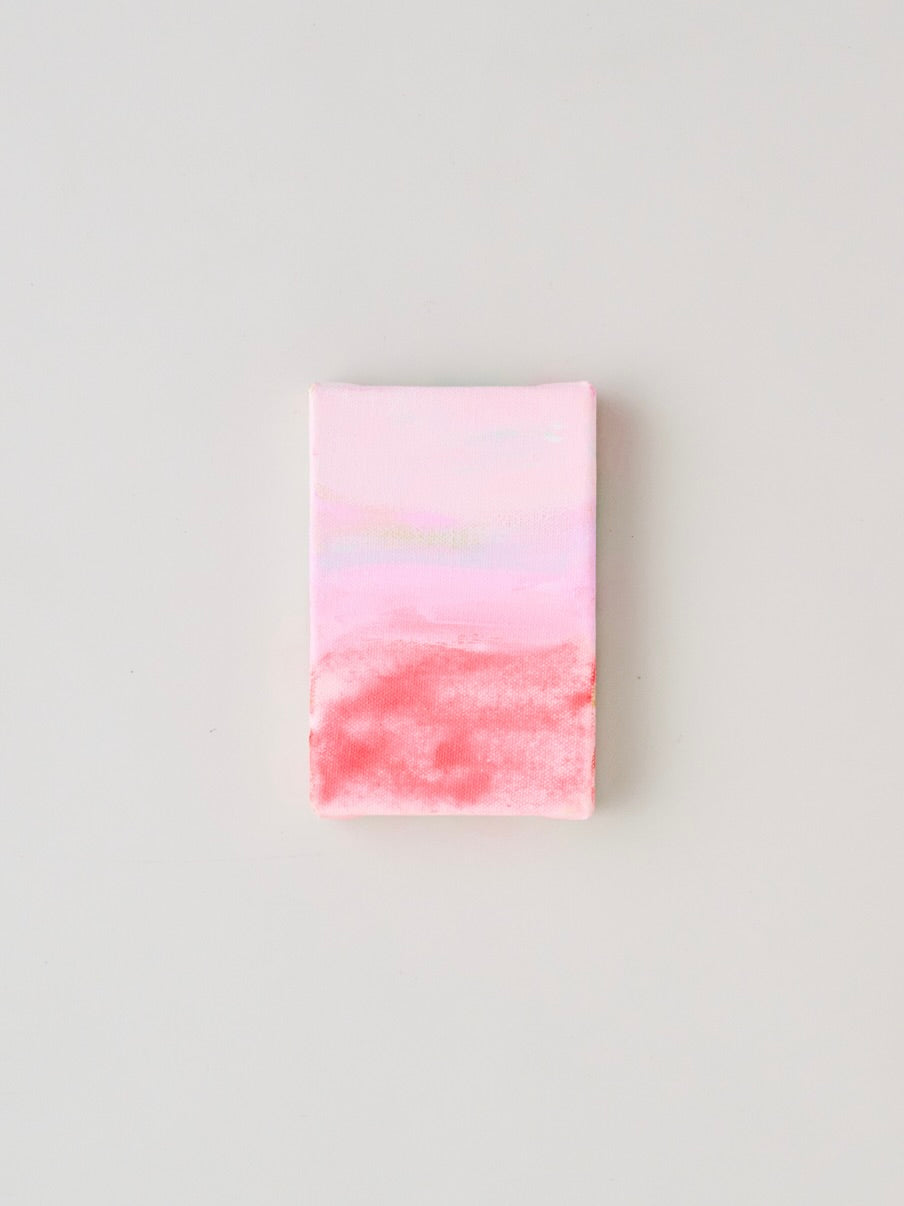 海と空の絵のシリーズ1点:去りゆく時、そして生まれくる時、ピンク色に染まる夜明け。それは1000年後の未来の風景。