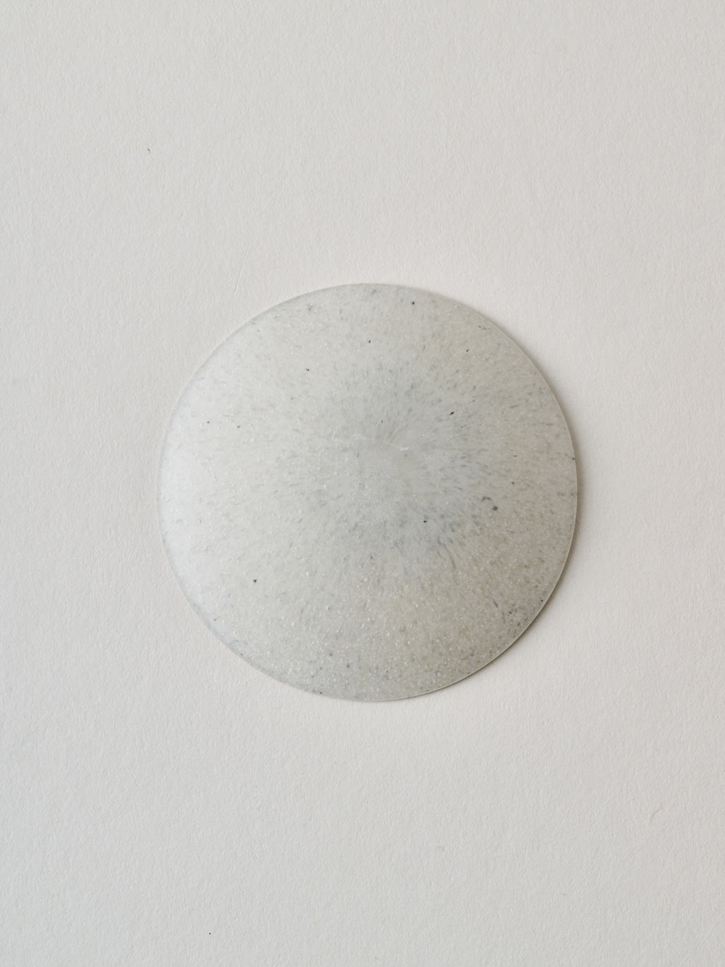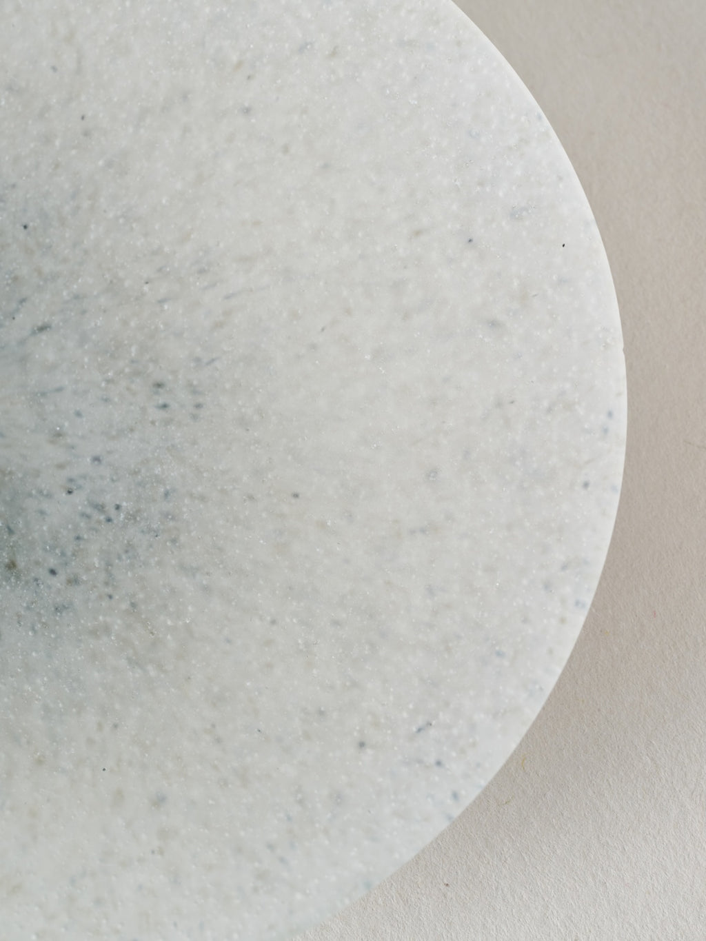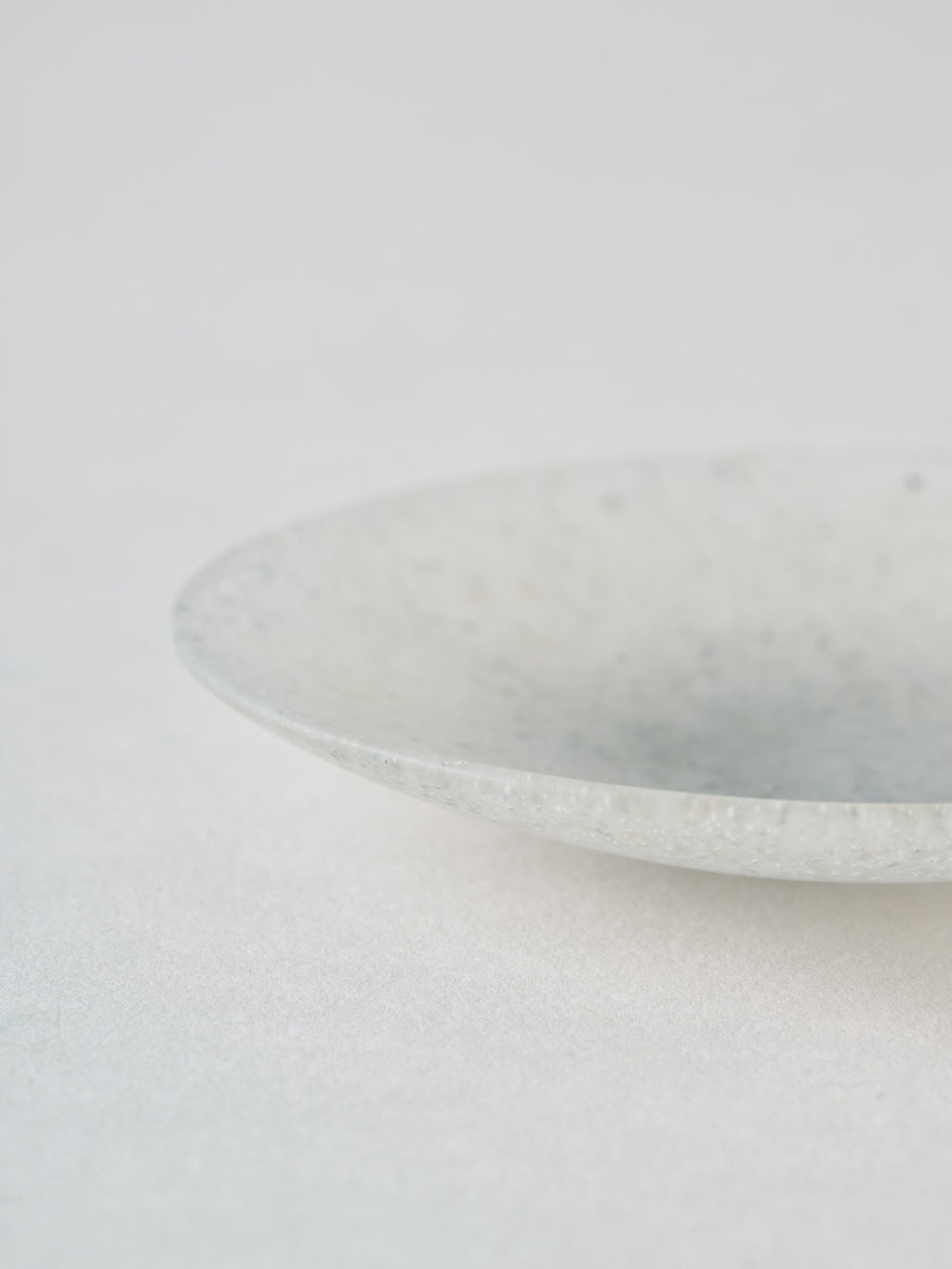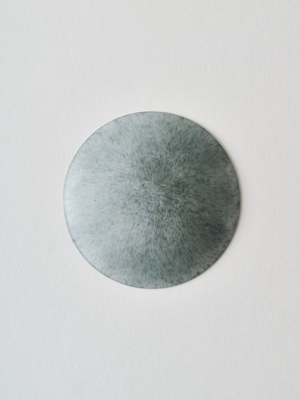 曇り空のような、水墨画のような、ニュアンスのあるグレーのヴェールを纏った、端正なラインが生み出すミニマルなガラスの器。ガラス作家・波多野裕子は、砕いたガラスの粉末を型に詰めて焼成する、伝統的なガラス工芸のパート・ド・ヴェール寄りのキルンキャスティング技法を用いて、日常に寄り添う道具を作る。