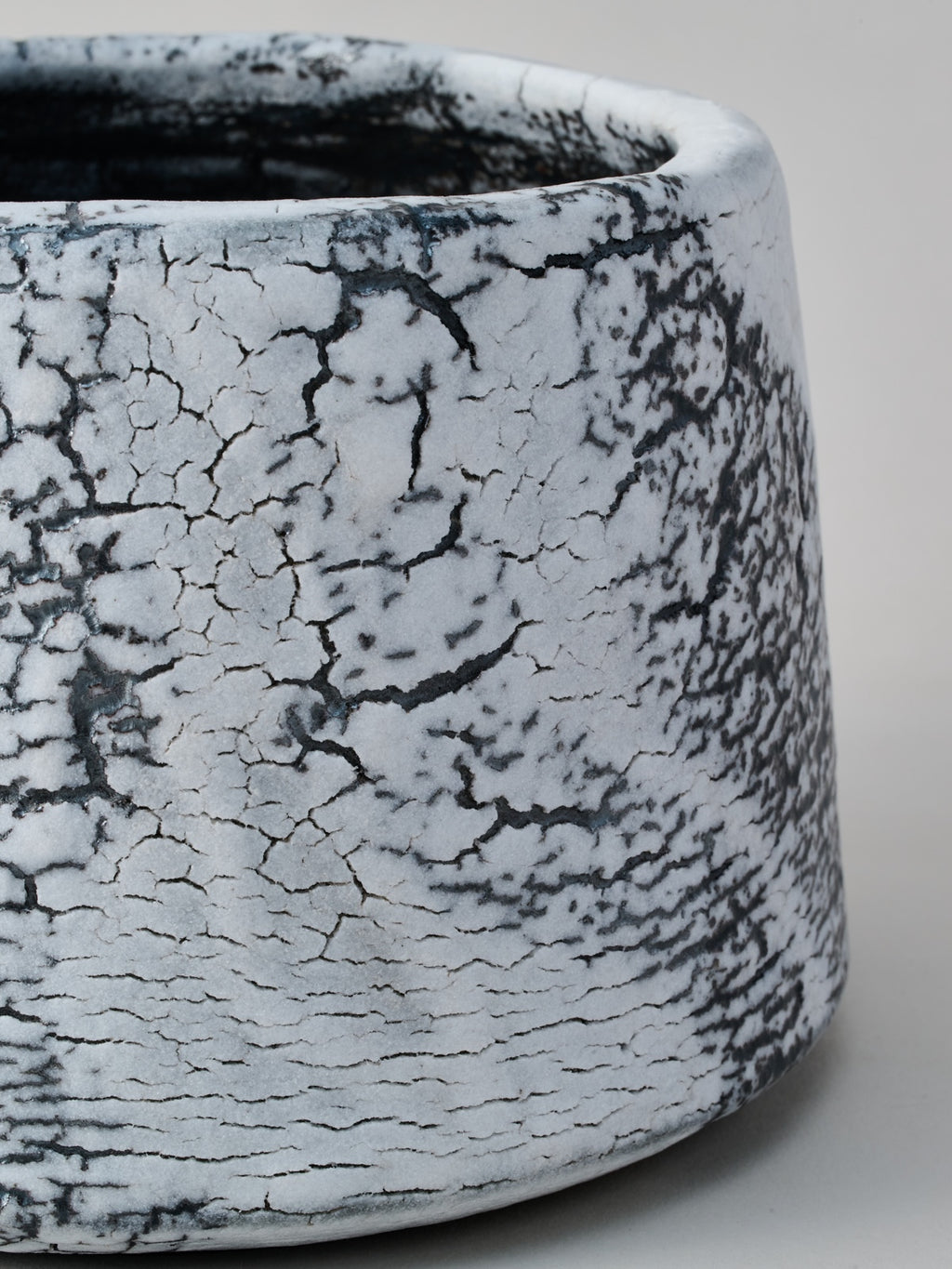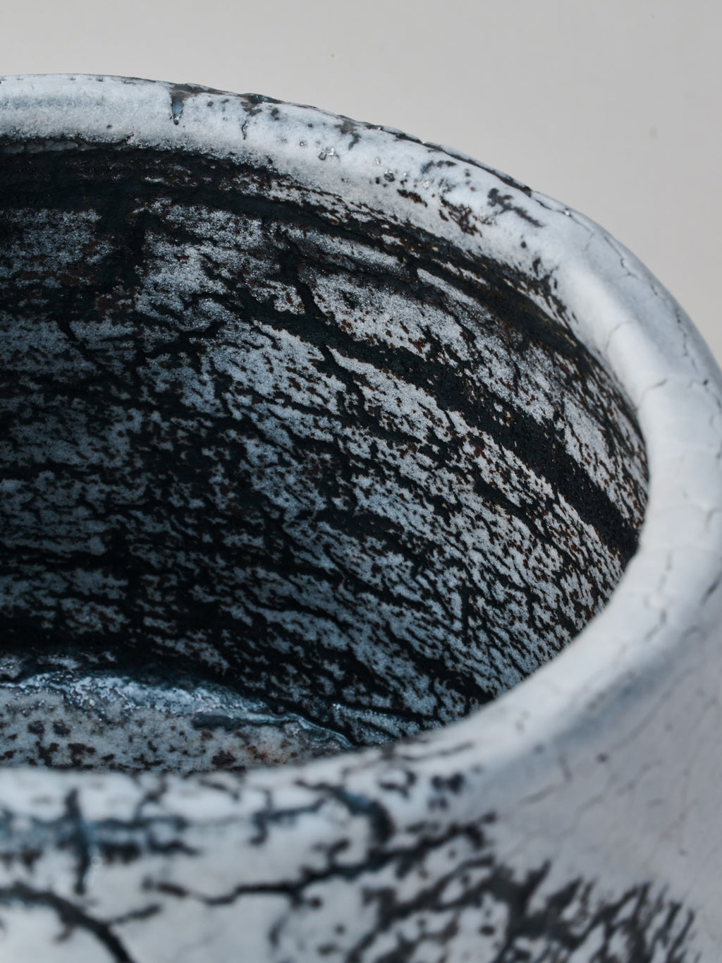 何もないミニマルな白い空間、モダンな生活空間にも合う、インテリアのアクセントとして、存在感のあるオブジェを意識したという新たな解釈で生まれた《志野 筒》です。ダイニングテーブルに置いて果物を飾ったり、ワインや日本酒を入れたり、花を生けたり、用途を問わず、自由な発想でお使いいただけます。